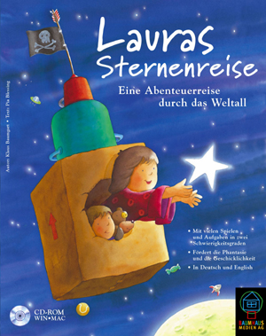 Die bezaubernde Geschichte von Laura und ihrem geheimnisvollen Stern dürfte durch die Bücher von Klaus Baumgart oder aus der Gutenachtgeschichte auf SF DRS schon vielen bekannt sein. Seit Anfang März sind die Episoden der 13-teiligen deutschen Zeichtrickserie nun jeweils am Sonntagnachmittag im Kinderkanal zu sehen. Am Anfang der Spielgeschichte wird in lieblichen Bilderbuchillustrationen erzählt, wie Laura ihren Stern kennen lernt. Als sie eines Abends aus dem Fenster schaut, sieht sie, wie ein Stern vom Himmel direkt vor ihr Haus fällt. Mit Hilfe der Spielerinnen und Spieler verarztet sie ihn. Weil er aber schon bald Heimweh bekommt, beschliessen Laura und Tommy, ihn gemeinsam zurückzubringen. Bis zum Ziel müssen insgesamt 6 einfache Spiele gemeistert werden, die in jeweils zwei Schwierigkeitsstufen vor allem Wahrnehmung und Reaktionsvermögen ansprechen. Zuerst muss nach einer gezeichneten Vorlage aus Kartons eine Rekete gebaut werden. Auf dem Flug durchs All gibt es allerlei Hindernisse, denen man mittels Pfeiltasten ausweichen kann, und im Sockenspiel sollen die passenden Paare eingefangen und in den Wäschekorb gelegt werden. Das Spiel setzt keine Lesefertigkeiten voraus und lässt sich schon im Vorschulalter gut einsetzen. Aufgrund des linearen Aufbaus und der eher begrenzten Spielmöglichkeiten düfte es für ältere Kinder jedoch bald an Reiz verlieren. Ab 4 Jahre.
