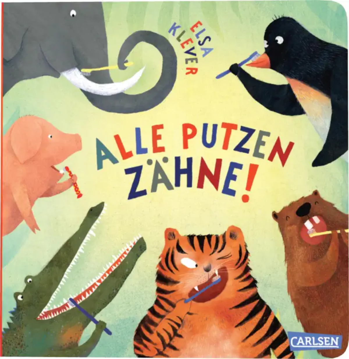 Kaum sind die Kinderzähne da, sollten sie auch geputzt werden! Elsa Klever zeigt mit Tieren, wie unterschiedlich das geht, und bietet so eine witzige Identifikationsmöglichkeit. Krokodil braucht etwas länger, Hamster nimmt etwas viel Zahnpasta, Kätzchen will eigentlich nicht – und am Schluss stehen Zahnbürste und -pasta für das betrachtende Kind bereit.